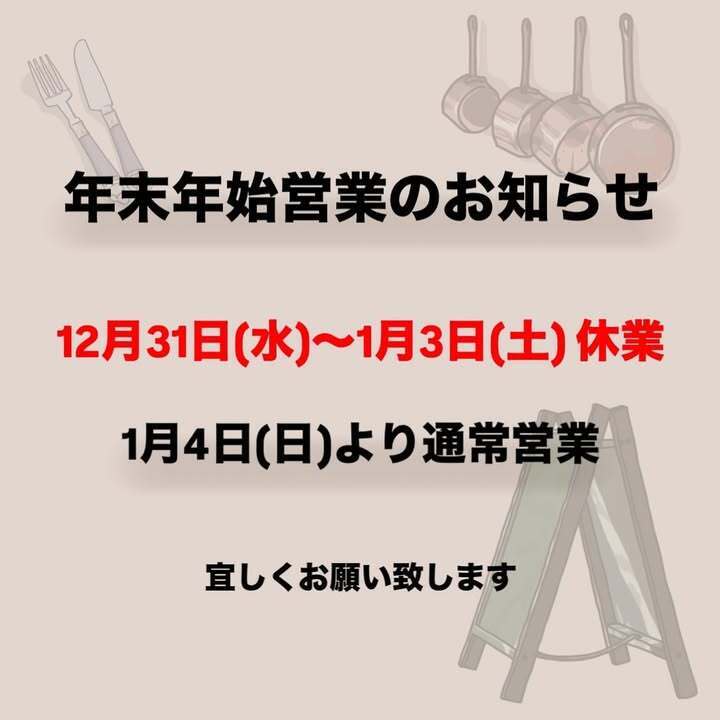 12月31日(水)〜1月3日(土)まで休業させて頂き